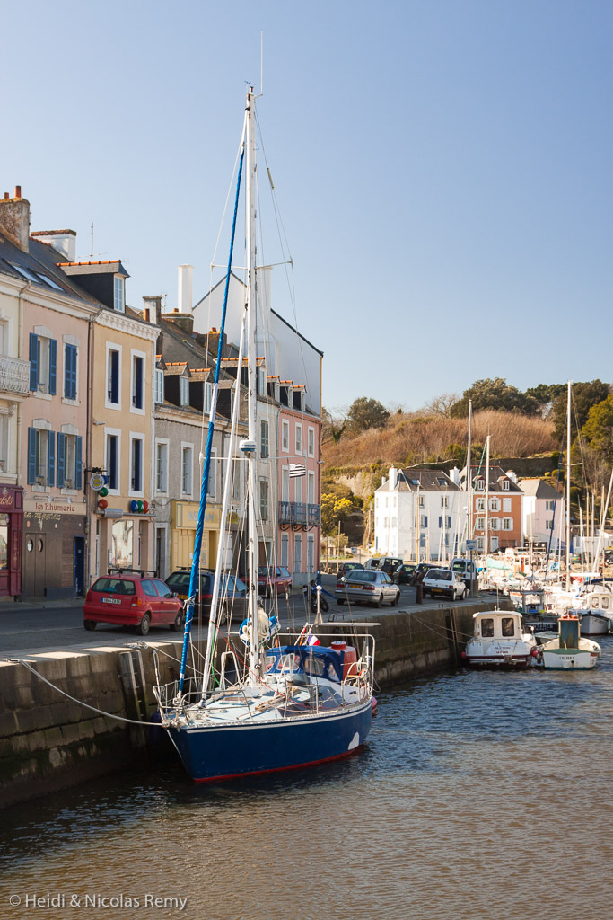 Il n’est pas aussi illustre que son quasi-homonyme le Glacier Express, mais il est surtout bien différent, notre express à nous. J’ai nommé le Glagla Express. Nous avions enfin quitté La Trinité car les conditions nous semblaient favorables et les gros travaux avaient touchés à leur fin. Mais le petit coup de vent passager qui, selon les prévisions, devait ensuite laisser la place à une bonne brise portante avait décidé de jouer les prolongations. Après trois jours passés à Palais, sur Belle-Ile la bien nommée, nous avons franchi l’écluse du bassin à flot après les derniers préparatifs. Une bonne douche et l’approvisionnement du dernier Kouign-Amman avant un moment, par exemple… Il faut dire que le long du quai au pied de la ville, l’eau était à 8 °C, nous trouvions du givre sur le pont le matin et notre poêle qui tournait non-stop provoquait une importante condensation. Nous nous sommes donc élancés à la première occasion.