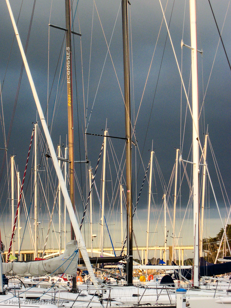 Nos mains, poignets et dos se rappellent encore de ces mois, fort instructifs il faut dire, mais physiques. Nous avons eu de très belles journées, d’autres glacées, et d’autres encore à avancer le mieux possible malgré la tempête qui soufflait et le bateau qui valsait dans le port. Le temps en hiver en Bretagne est très dynamique et très appréciable lorsqu’on est habitué au stratus étouffant de Genève.