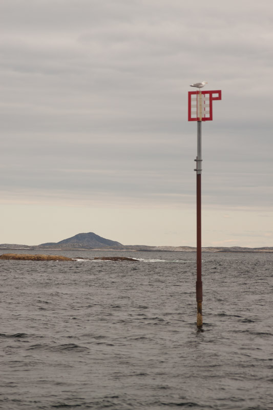 Enfin, vous remarquerez assez vite sur les cartes norvégiennes la pléthore de feux. Si certaines marques ci-dessus sont illuminées, les chenaux navigables sont surtout balisés par une myriade de feux à secteur, qui ont souvent tous la même apparence : petits, blancs, avec un chapeau orangé. Si le skjærgård, et plus particulièrement le chenal principal, reste navigable l’hiver, c’est grâce à eux. En navigant l’été, en revanche, on a peu de chance de s’en servir, vu la durée des journées.