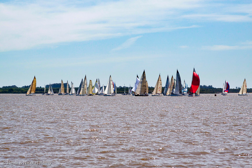 C’est un dimanche matin que nous approchons de Colonia, passant devant le petit Rio Riachuelo, duquel surgissent d’un coup 70 voiliers battant tous pavillon argentin, pour s’organiser en séries autour d’un bateau comité. La régate est lancée quelques quarts d’heure plus tard, et nous sommes rattrapés par une horde (très sauvage !) de destriers sous spi, s’élançant vers Buenos Aires.