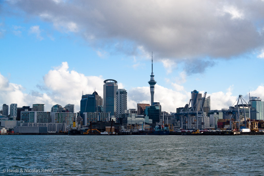 Moteur, donc, pour rejoindre juste au tomber du jour Kawau Island, de l’autre côté du Hauraki Gulf. Le lendemain matin une petite brise nous permet de progresser plus avant, mais nous abandonne à mi-parcours, et notre fidèle Yanmar s’attelle de nouveau à la tâche, pour nous mener en fin d’après-midi devant le Auckland Skyline. Nul autre building, évidemment, ne gratte plus le ciel que la célèbre Sky Tower qui fait l’orgueil des habitants de la ville. Plutôt que de nous parquer dans les marinas usines à gaz de Bayswater ou Westhaven, sur les conseils d’amis nous avons dégotté une place à la bien plus petite marina du Pier 21.