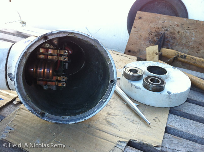 - Réparation du guindeau électrique un peu capricieux (les aimants du stator s’étaient décollés).