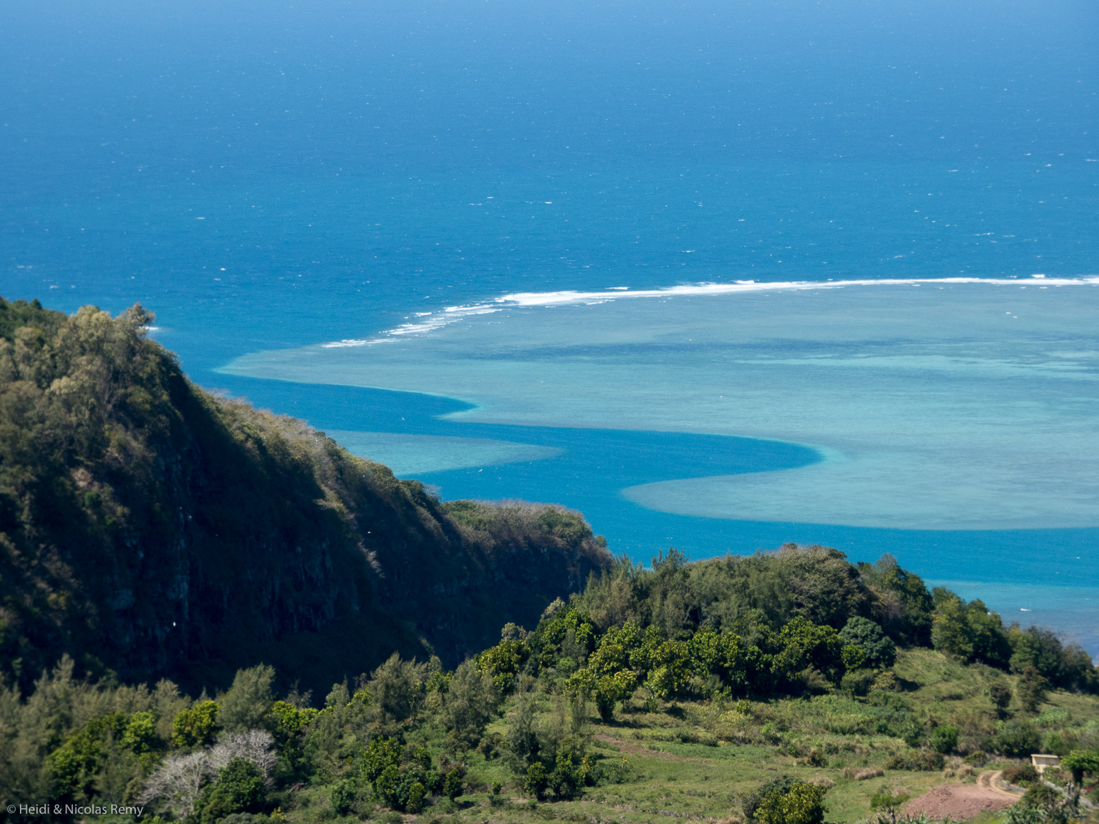 Et puis on se lance pour nos premières explorations, en prenant à la gare routière le bus qui nous dépose au sommet de l’île, là où il ne reste plus que cinq minutes à marcher pour atteindre le Mt Limon (398m d’altitude) – on domine alors Rodrigues mais en ne voyant que très peu la côte. Puis nous descendons à pied vers l’Anse aux Anglais où nous pique-niquons avant de rejoindre le port. On trouve aussi moyen d’atteindre la croix plantée en haut d’une barre rocheuse et qui surplombe l’ouest de Port-Mathurin. Lors de ces deux balades, on profite de très belles vues sur le lagon nord. Et puis assez vite, la vie sociale reprend, avec Rémi et Sylvie qui nous invitent pour un verre très sympa le soir à bord de leur Belissima. Nous profitons aussi de l’arrivée de Ralph Rover pour inviter Marie et Laurent, ainsi que Kelsey, Pete et leur petit Taz de Privateer avant que ces derniers ne repartent, pour un super dîner à bord, sans parler des quelques soirées où l’on se retrouve les uns et les autres pour une bière accompagnée de délicieux morceaux de porc et de saucisson au troquet local et authentique Chez Madame Marcel.
