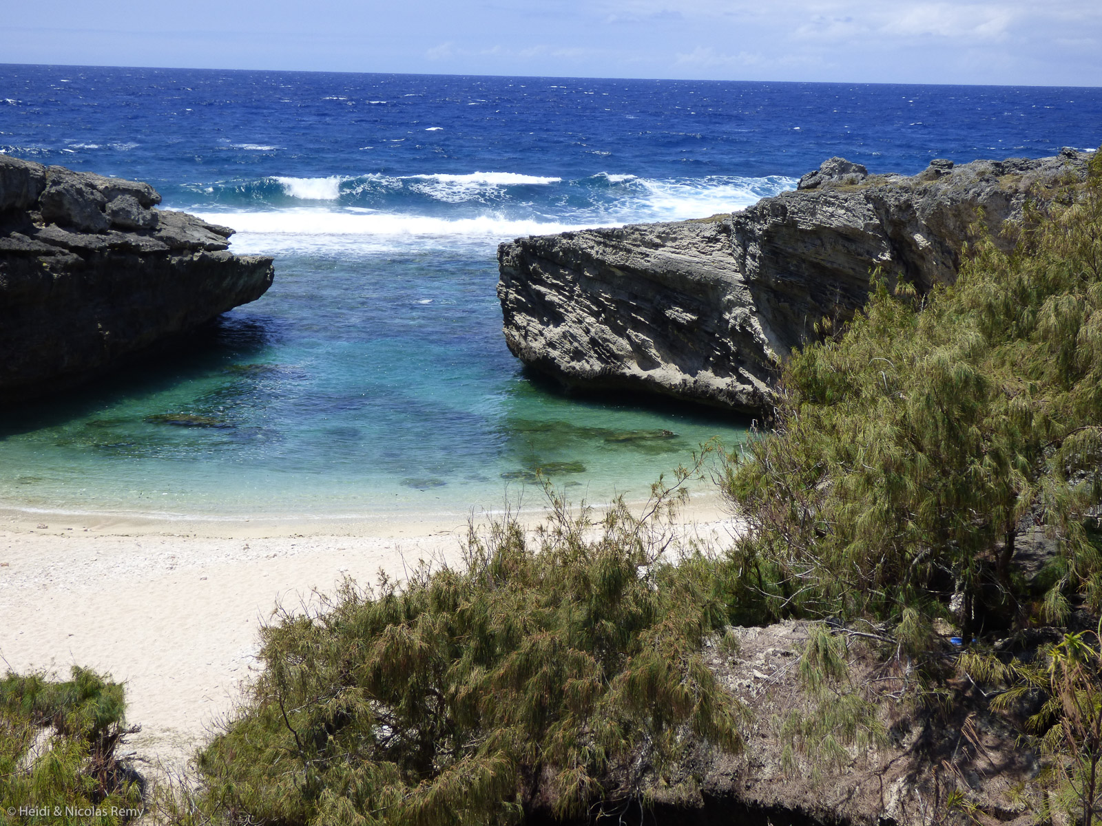 Nous prévoyons de passer encore quelques jours à Rodrigues avant de repartir, et il nous reste d’ailleurs à faire la plus belle randonnée de l’île, sur la côte est. Les bus de Rodrigues sont très pratiques. Ils circulent presque partout et sont peu chers, et ils nous mènent en l’occurrence à Petit Gravier et nous ramènent de Pointe Coton. Entre les deux, nous randonnons par une belle journée ensoleillée sur un sentier côtier qui passe par une succession de plages isolées. De la grande anse dorée à la petite crique sertie entre deux falaises calcaires et faisant face à la houle du large brisant sur le récif à quelques dizaines de mètres de là, la promenade nous enchante et on la termine par un déjeuner chez Solange et Robert, dont la paillote célèbre est tellement prise d’assaut que l’accueil et le service en deviennent problématiques – mais les bananes flambées sont fameuses.