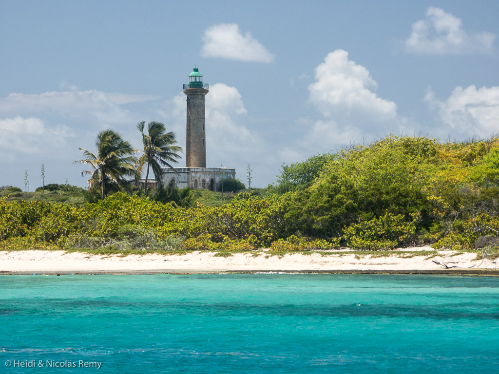 En attendant, nous profitons maintenant de ces îles magnifique. Nous sommes amarrés entre Terre de Haut et Terre de Bas, dans un superbe chenal étroit, parcouru par du courant, et protégé par un récif qui ferme le lagon au vent. Evidemment, il y a beaucoup de monde, d’autant que nous sommes le week-end, et que Pointe-à-Pitre n’est qu’à 25 milles, mais c’est tout de même très joli et reposant. Au vent de la plage, le snorkeling se fait dans une eau limpide, et il y a une variété importante de poissons, qui sont d’autant plus intéressant à observer qu’ils sont différents de ceux que l’on trouve en Indo-Pacifique. On reconnait les familles, mais les espèces elles-mêmes ont des couleurs différentes, des variations dans la forme ou la taille, etc. Petit bémol tout de même : question corail, il n’y a rien à voir, tout est mort et c’est sans doute la raison pour laquelle a été créée la réserve, ce qui est une bonne chose.