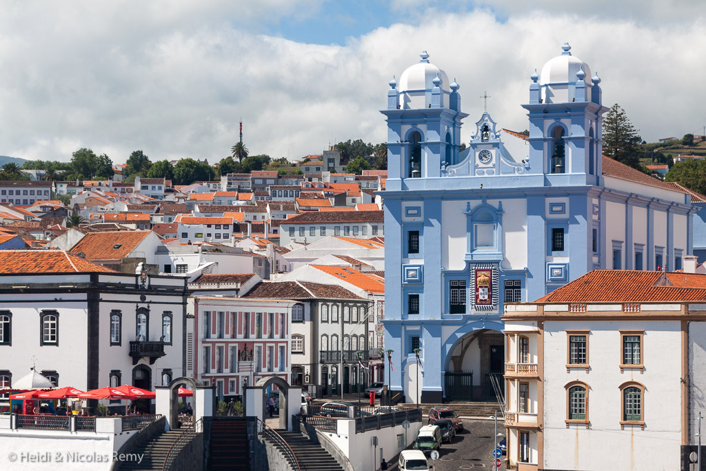 Pendant les quatre jours que durera notre escale, nous ne cesserons de nous y promener, explorant successivement telle ou telle direction. Les églises sont nombreuses, variées et élégantes, à commencer par la somptueuse Igreja da Misericórdia, bleu clair, qui nous fait directement face sur le port. La cathédrale, elle, est bordée de beaux palmiers et nous apprécions son carillon, un son que nous n’avons pas entendu depuis des années, et que nous devinons devoir aux Flamands, mandatés par les Portugais pour coloniser les îles lors de leur découverte au XVème siècle. Les couvents, palais, manoirs et hôtels particuliers sont également légion dans la ville, et certains d’entre eux atteignent des dimensions importantes tandis que d’autres font preuve d’originalité architecturale. Et là où aucun édifice ne dénote par rapport à ses voisins, c’est l’élégance de l’ensemble qui séduit.