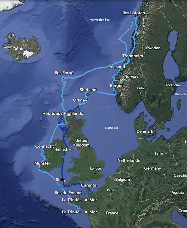 2009 : Remontée de la Norvège jusqu’aux Lofoten, puis redescente vers la Bretagne en passant par les Féroé, de nouveau l’Ecosse et la côte ouest de l’Irlande.