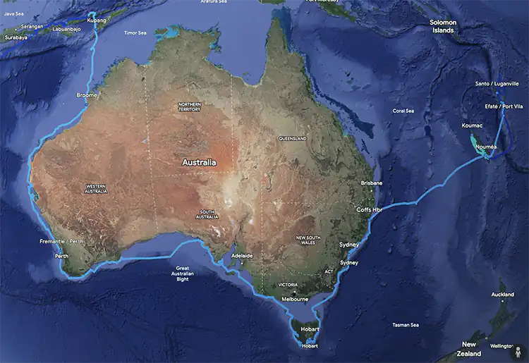 2015–2016 : En repassant rapidement à Nouméa, nous faisons ensuite route vers l’Australie. Descente de la côte est, tour de la Tasmanie et côte sud puis ouest du continent sont au programme, avant d’atteindre l’Indonésie.