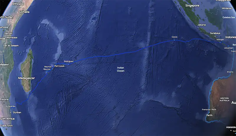 Fin 2016 : Nous visitons les Petites Iles de la Sonde, avant de quitter l’Indonésie à Bali. La traversée de l’Océan Indien nous permet de faire escale aux Cocos Keeling, à Rodrigues, à Maurice, et à la Réunion avant de rallier enfin l’Afrique du Sud.
