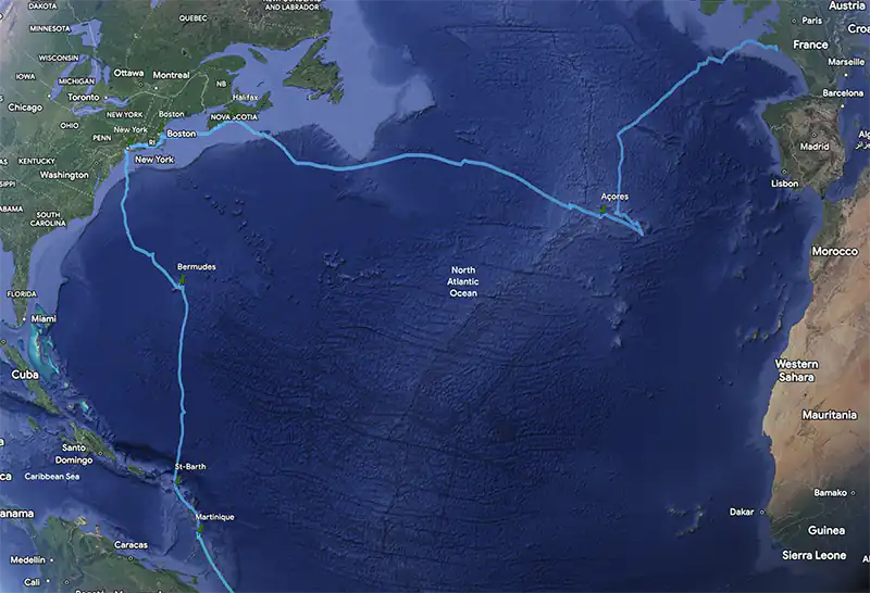 Mi 2017 : Nous traversons vers les Bermudes, New York, Boston et la Nouvelle-Ecosse, avant de nous lancer dans une nouvelle transatlantique, via les Açores, pour rallier notre point de départ, en Bretagne.